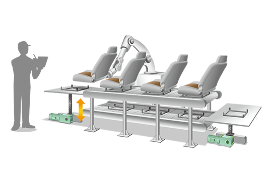 लिफ्टर के फर्श को नीचे करके, हम ऊपरी और निचले दो-स्तरीय कन्वेयर को अधिक कॉम्पैक्ट बनाने में सफल हुए हैं।
