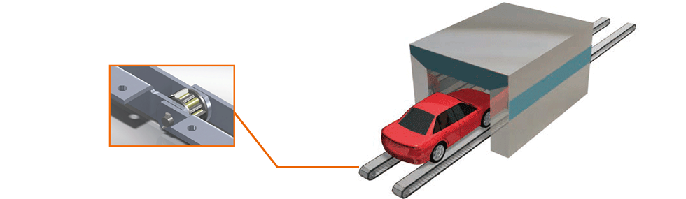 इंजन ब्रेक परीक्षक रोलर दबाव और आगे और पीछे के एक्सल की स्थिति निर्धारण के लिए उच्च परिशुद्धता वाले त्सुबाकी पावर सिलेंडर उपयोग करता है।