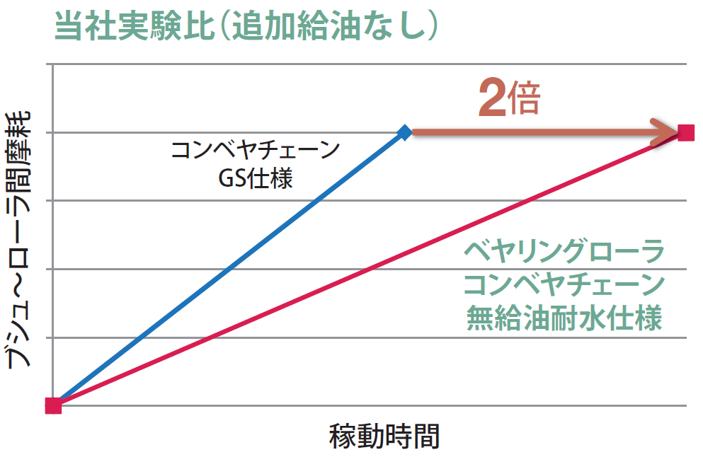 परंपरागत कन्वेयर चेन के साथ, कन्वेयर को स्थापित करने के लिए एक गड्ढा खोदना आवश्यक था, लेकिन चेन पिच को छोटा करके, कम-फर्श वाला कन्वेयर स्थापित करना संभव है, और बिना गड्ढा खोदे फर्श पर कन्वेयर स्थापित करने से स्थापना समय कम हो गया है।