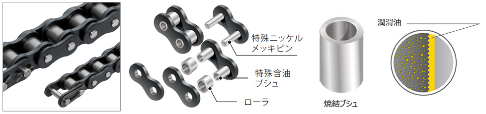 इस रोलर में स्टील रोलर के अंदर एक विशेष तेल से भरा हुआ बेयरिंग लगा है, जिससे इसे बिना चिकनाई वाला इस्तेमाल किया जा सकता है। इससे स्टील रोलर को बिना तेल डाले इस्तेमाल करने पर होने वाला असामान्य शोर रुक जाता है। आंतरिक परीक्षण में पाया गया है कि स्टील की तुलना में इसका शोर लगभग 10 dB कम है।