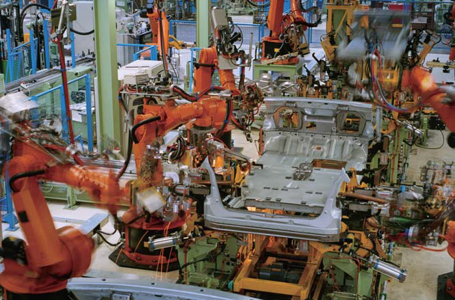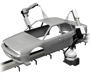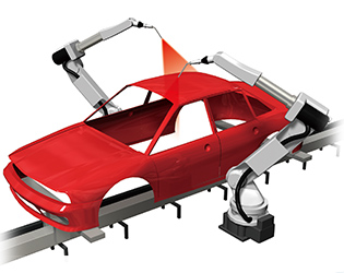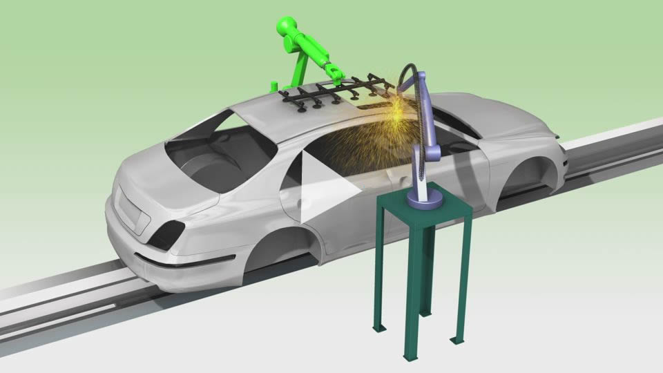 टीकेआरबी प्रकार का रोबोटिक आर्म, जो तीन आयामों में चलता है, शरीर को वेल्ड करने के लिए उपयोग किया जाता है।