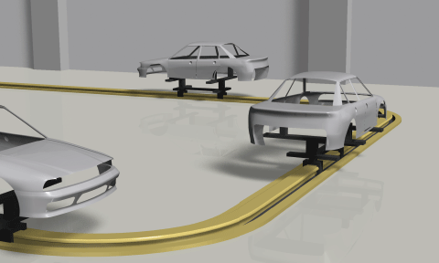 एक ऐसी सुविधा है जहाँ इंजन और रियर सस्पेंशन को एक ओवरहेड कन्वेयर द्वारा निलंबित वाहन बॉडी पर स्थापित किया जाता है। इस प्रक्रिया में उच्च स्तर की सटीक स्थिति निर्धारण की आवश्यकता होती है, ज़िप चेन लिफ्टर्स का उपयोग किया जाता है, जिनकी हाइड्रोलिक लिफ्टर्स की तुलना में बेहतर स्टॉपिंग सटीकता होती है और इन्हें उच्च गति पर ऊपर और नीचे उठाया जा सकता है।