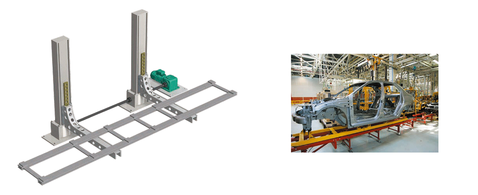 बॉडी वेल्डिंग प्रक्रियाओं के दौरान, गैन्ट्री लोडर और रोबोट का उपयोग करके पुर्जों के परिवहन के लिए उपकरण मौजूद होते हैं, और पुर्जों की डिलीवरी के लिए लगने वाले समय को कम करने के लिए ज़िप चेन लिफ्टर का उपयोग किया जाता है। अपनी उच्च गति लिफ्टिंग और उच्च स्थिति निर्धारण सटीकता के साथ, इसे अन्य परिवहन उपकरणों के साथ भी जोड़ा जा सकता है।