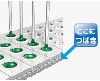 बेयरिंग सेक्शन में विशेष इंजीनियरिंग प्लास्टिक* से निर्मित बुशिंग का उपयोग करके, बिना चिकनाई वाला संभव हो पाता है। इससे मशीन का जीवनकाल लंबा होता है और चेन का प्रारंभिक खिंचाव कम होता है, यही कारण है कि यह फिलिंग और पैकेजिंग मशीनों के लिए लोकप्रिय है।