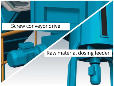 त्सुबाकी के गियर मोटर्स का उपयोग स्क्रू कन्वेयर ड्राइव और कच्चे माल की मात्रा निर्धारित करने वाली फीडिंग मशीनों में किया जाता है।