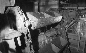 यह कन्वेयर चेन विशेष रूप से उन कन्वेयरों के लिए डिज़ाइन की गई है जो स्लैग का परिवहन करते हैं, जो अपशिष्ट पदार्थों और राख को पिघलाकर ठोस बनाने से उत्पन्न होता है। इसमें पिघले हुए स्लैग के कारण होने वाले घिसाव और पानी की गुणवत्ता (पीएच मान) में परिवर्तन के कारण होने वाले क्षरण को रोकने के उपाय शामिल हैं।