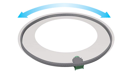 गियरों को आंतरिक रूप से स्थापित करके, नमूना उपकरण को अधिक कॉम्पैक्ट बनाया जा सकता है।