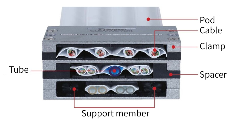 केबल, ट्यूब और सपोर्ट मेंबर को पॉड के अंदर स्टोर करने से घिसावट के कारण उत्पन्न होने वाले मलबे को फैलने से रोका जा सकता है।
