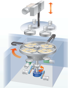 सतह प्लेट को घुमाने के लिए न्यूनतम घूर्णीय उतार-चढ़ाव वाले ट्रॉय ड्राइव के उपयोग के कई उदाहरण हैं। इसके अलावा, ड्राइव बेल्ट और पुली, और ब्रश को चलाने के लिए रिड्यूसर का भी उपयोग किया जाता है।