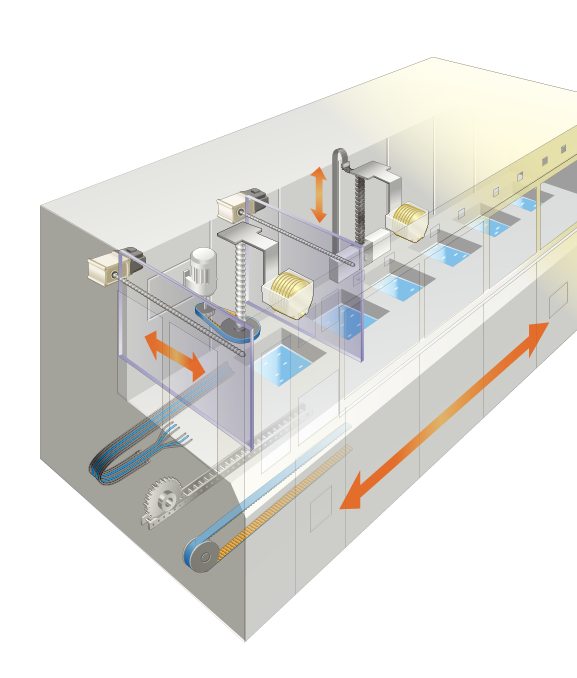 इसके अलावा, वेफर स्टेज के गतिशील भागों में केबल कैरियर (CABLEVEYOR), बेल्ट और पुली का भी उपयोग किया जाता है।