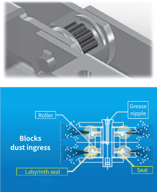 त्सुबाकी उत्कृष्ट धूल प्रतिरोधक क्षमता वाले बेयरिंग रोलर्स का उपयोग करके चेन की लंबी आयु सुनिश्चित करता है।