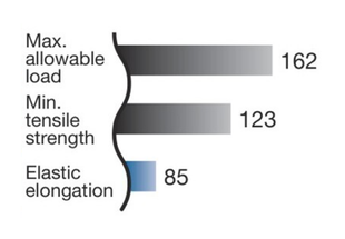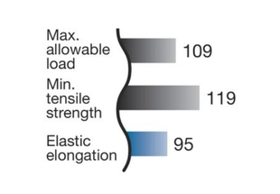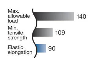 *यह तुलना सामान्य प्रयोजन वाली रोलर चेन को 100 पर सेट करने पर आधारित है। (तुलना RS80 आकार पर आधारित है)