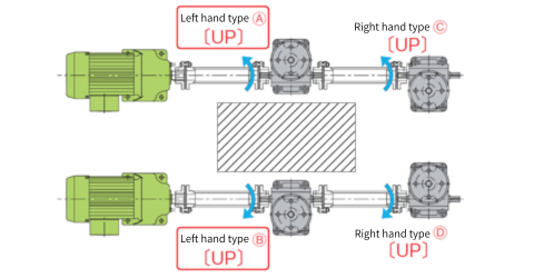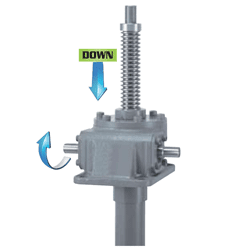 यदि A और B राइट-हैंड थ्रेड हैं, तो स्क्रू C और D की ओर विपरीत दिशा [नीचे] में आगे बढ़ेंगे।