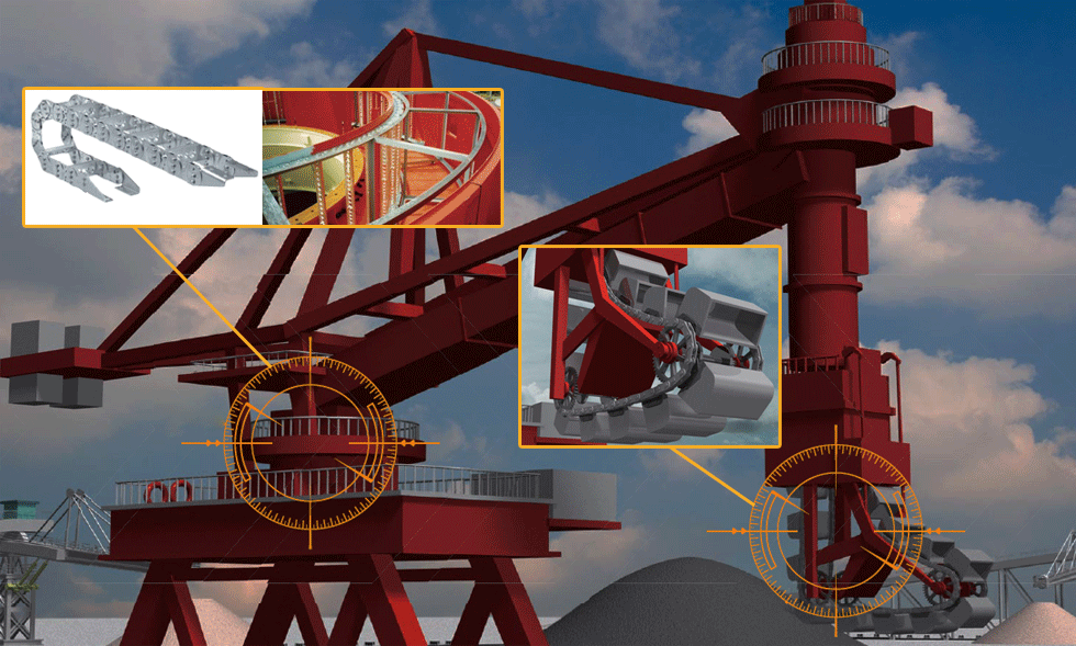 रिक्लेमर का स्विवेल रिंग गियर पिनियन द्वारा संचालित होता है। त्सुबाकी का यांत्रिक संरक्षक बड़े उपकरणों में भी कोयले या मलबे के कारण गियर जाम होने से होने वाले ओवरलोड को तुरंत रोकता है।