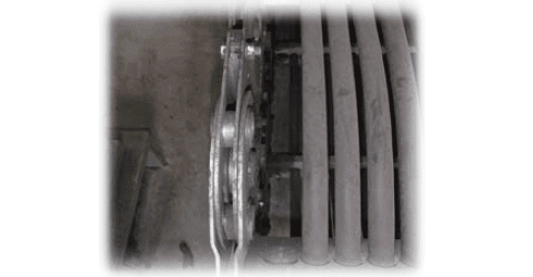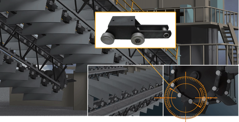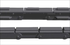 - चेन के चलने का प्रतिरोध कम हो जाता है (सामान्य उपयोग वाली कन्वेयर चेन की तुलना में 1/3)।