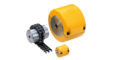 इस लचीली कपलिंग में कपलिंग के लिए विशेष रूप से निर्मित रोलर चेन की दो पंक्तियाँ होती हैं, जो दो स्प्रोकेट के चारों ओर लिपटी होती हैं।