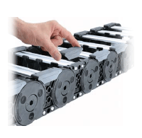 केबल कैरियर (CABLEVEYOR) प्लास्टिक श्रृंखला 120 मीटर तक के यात्रा लंबाई संभाल सकती है, जिससे यह लंबी यात्रा दूरी वाले ओवरहेड ट्रैवलिंग क्रेनों में उपयोग के लिए उपयुक्त है।