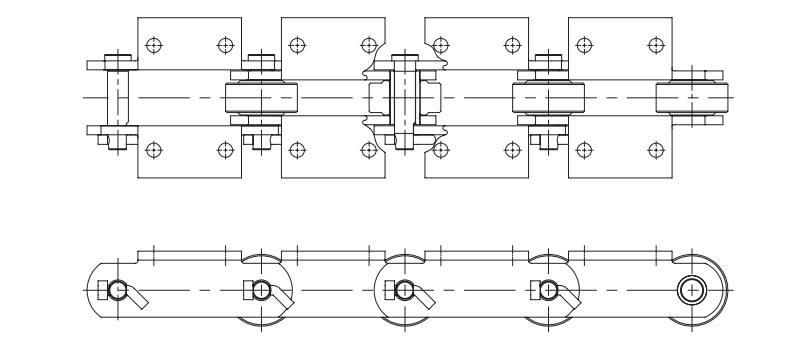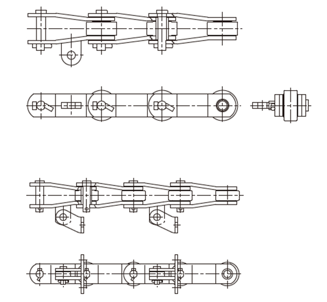 ये उच्च क्षमता वाली चेनें कास्ट आयरन कॉम्बिनेशन चेन स्प्रोकेट के साथ संगत हैं।