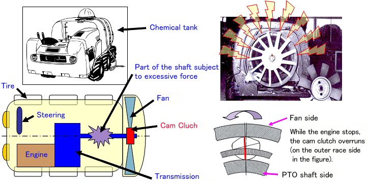 इसके अलावा, जब इंजन बंद हो जाता है, तो कैम क्लच स्वतंत्र रूप से घूमता है और पीटीओ शाफ्ट को पंखे से अलग कर देता है।