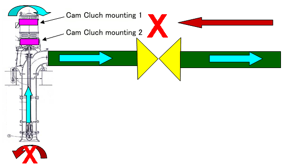 उपरोक्त आरेख में स्थापना स्थान 1 या 2 पर रिवर्स रोकथाम उपकरण के रूप में कैम क्लच स्थापित करना प्रभावी है।