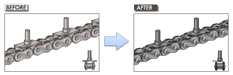 अनुप्रयोग उदाहरण: विशेष अनुलग्नकों वाली चेन (प्लस α) - कन्वेयर उपकरण