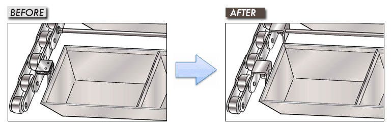 हम विशेष अटैचमेंट वाली चेन का प्रस्ताव रखते हैं जहाँ बाल्टियों और छड़ों को मानक चेनों से वेल्ड किया जाता है। अब बाल्टियों और छड़ों को आसानी से जोड़ा जा सकता है, जिससे वेल्डिंग में लगने वाला समय कम हो जाता है और चेन की लाइफ लंबी हो जाती है।