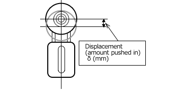 - विस्थापन (धक्का राशि) δ(मिमी)