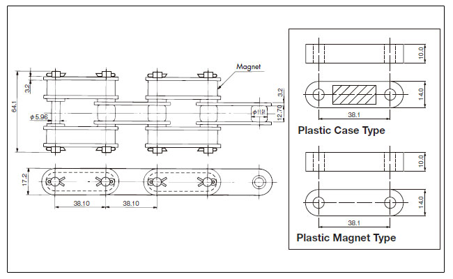 | चुंबक के साथ | MG | चुम्बक परिवहन की जाने वाली वस्तु के आवरण को अपनी ओर आकर्षित करता है, इसलिए इसका उपयोग ढलान पर वस्तुओं के परिवहन के लिए किया जा सकता है।![]() |