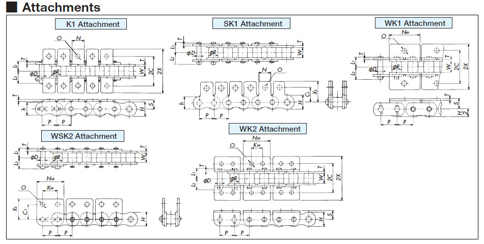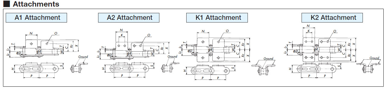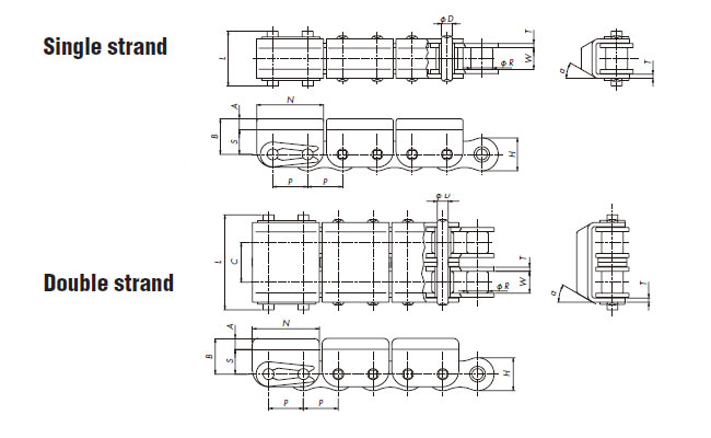 | पर्वत के आकार के लगाव के साथ | RE | यह चेन विभिन्न छड़ आकार की वस्तुओं के परिवहन के लिए उपयुक्त है।![]() |