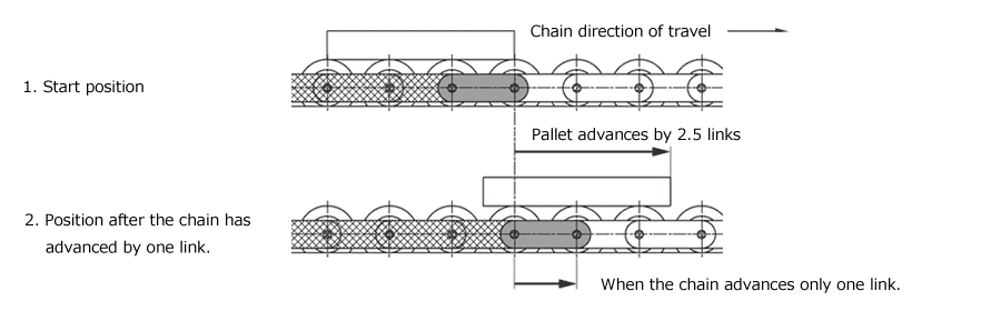 रोलर व्यास अनुपात के कारण, परिवहन किये जाने वाले माल की गति चेन गति से 2.5 गुना अधिक होती है।