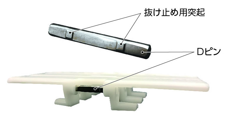 कनेक्टिंग पिन का क्रॉस सेक्शन डी-आकार का होता है और इसे ढीला होने से रोकने के लिए इसमें दो उभार होते हैं।