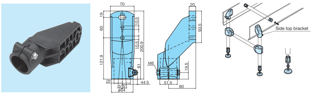 यह कन्वेयर फ्रेम को किनारे से सहारा देता है। इसका उपयोग कन्वेयर के नीचे ट्रे रखने के लिए या सरल संरचना वाले कन्वेयर के लिए करें।