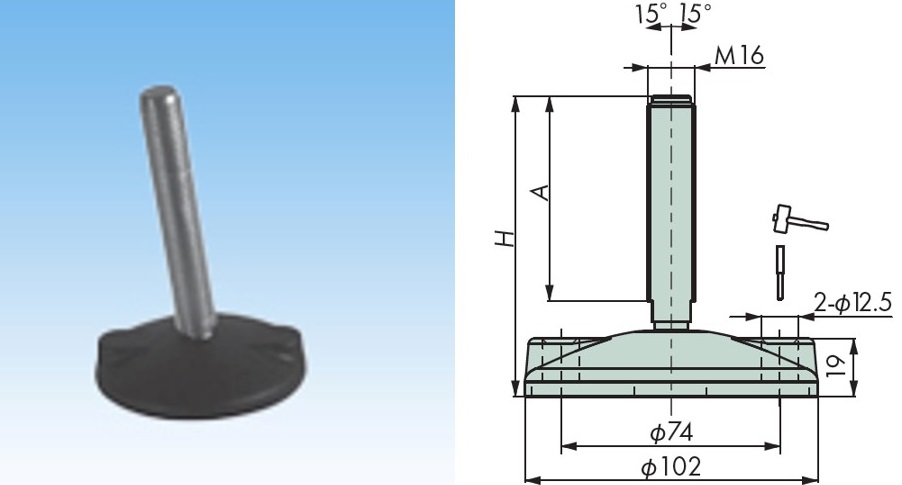 इसका उपयोग कन्वेयर या उपकरण के पैरों के लिए किया जा सकता है। उन स्थानों पर उपयोग करें जहां झुकाव या समतल समायोजन की आवश्यकता होती है। ड्रिल किए गए छेद वाले प्रकार को फर्श पर भी लगाया जा सकता है।