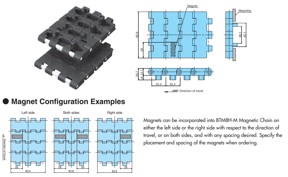 प्लास्टिक मॉड्यूलर चेन BTM8H-M प्रकार की प्रमुख विनिर्देश