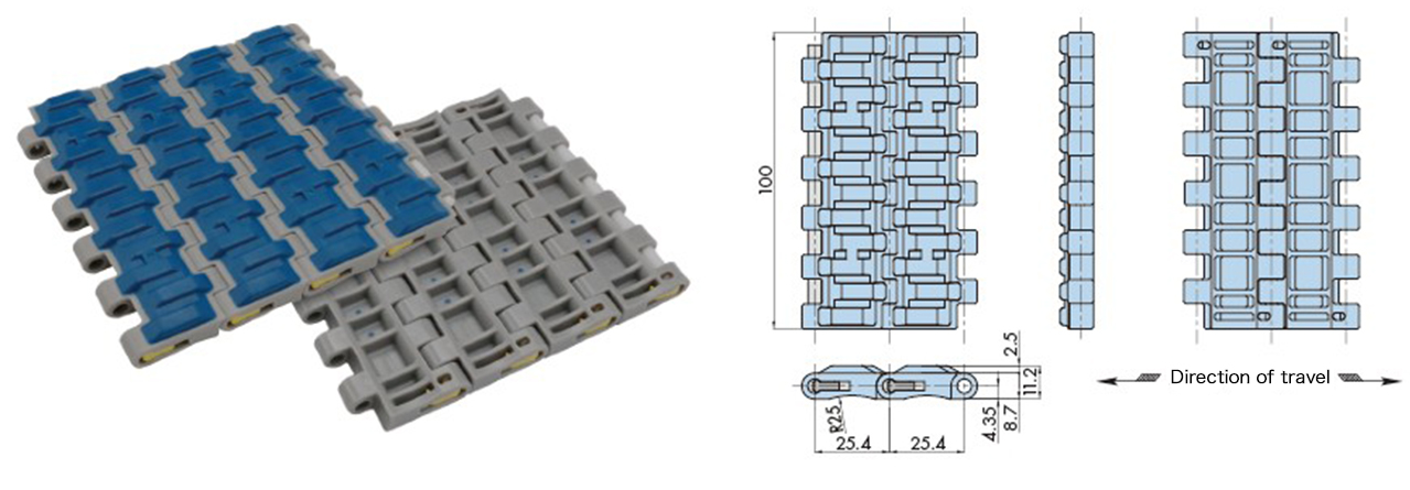प्लास्टिक मॉड्यूलर चेन WT2525VG-M प्रकार की प्रमुख विनिर्देश