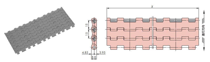 プラスチックモジュラーチェーンBTC5形 主要諸元