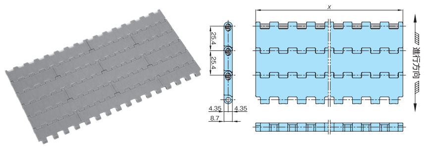 プラスチックモジュラーチェーンBTC8形 主要諸元