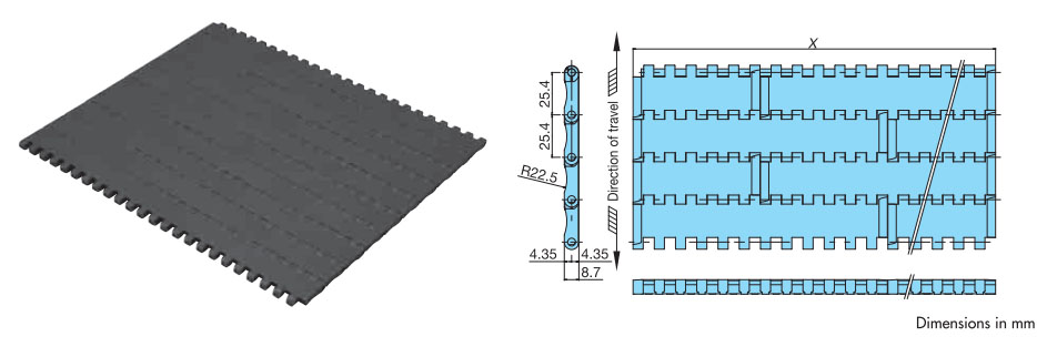 घर्षण गुणांक मानक श्रृंखला तुलना में 7 से 28% कम है, जिससे संचय के दौरान लाइन का दबाव कम होता है और परिवहन की जाने वाली वस्तुओं पर खरोंच लगने से बचाव होता है।