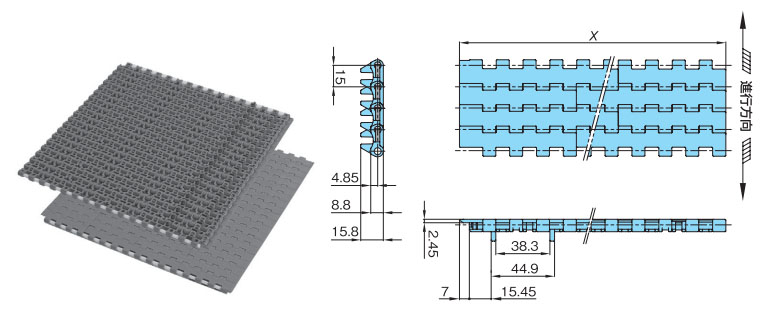 • ・チェーン端面に鍔が付いているので、直交搬送に最適
