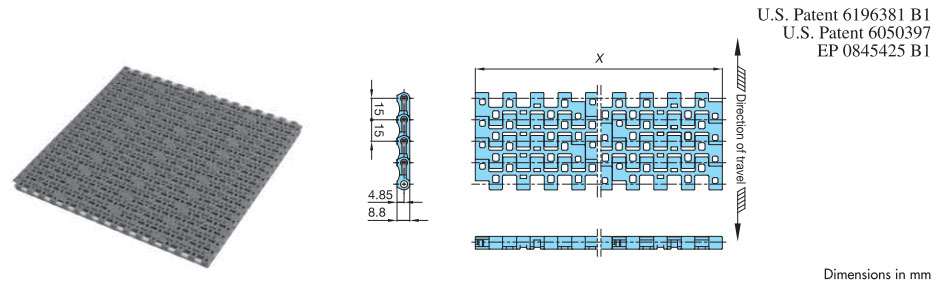 • ・幅広と幅狭のプラスチック製モジュールをレンガ状に組合せ、ワイドな搬送面を実現し大量搬送が可能です。