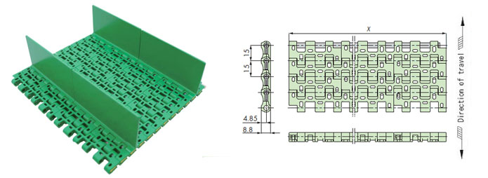 चेन पिच मिमी खुले क्षेत्र की दर % बैकबेंड त्रिज्या मिमी