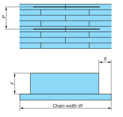 ・フライトの取付け間隔P (チェーンピッチ25.4mmの整数倍で取付け可能です)