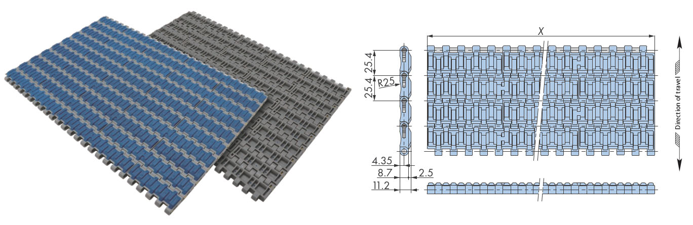 चेन पिच मिमी खुले क्षेत्र की दर % बैकबेंड त्रिज्या मिमी