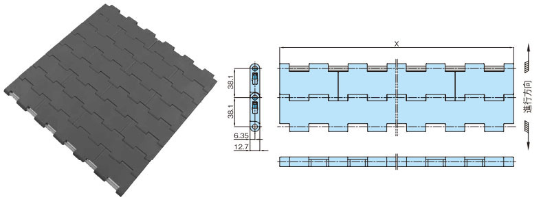 プラスチックモジュラーチェーンWT3835RN-K形 主要諸元