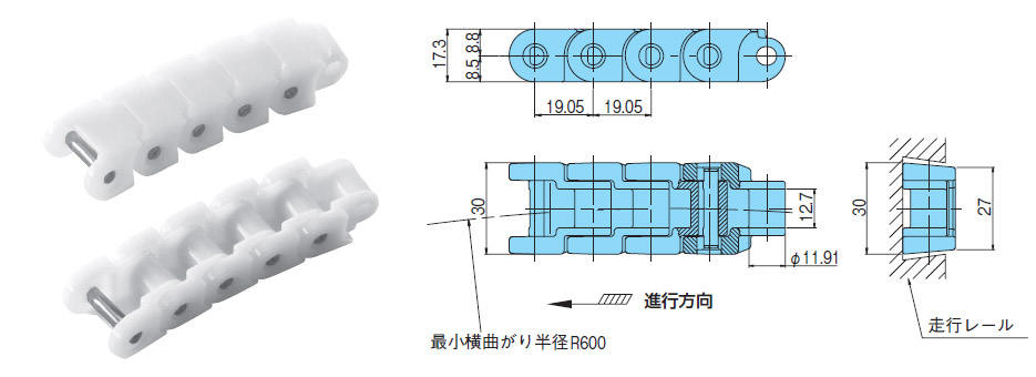 प्लास्टिक ब्लॉक चेन आरएसपी-सीयू प्रकार की प्रमुख विनिर्देश