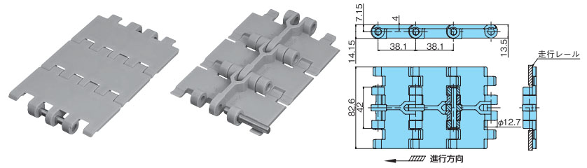 • ・くし歯状多ヒンジ構造により、トッププレートをラップさせており、搬送物の引掛りを防止します。ペットボトル等、不安定容器の搬送に最適です。