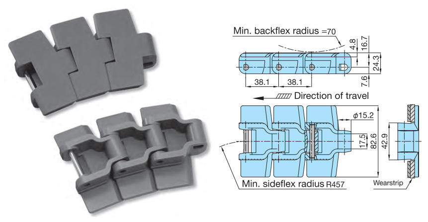 प्लास्टिक टॉप चेन TTUP-LLPC प्रकार प्रमुख विनिर्देश