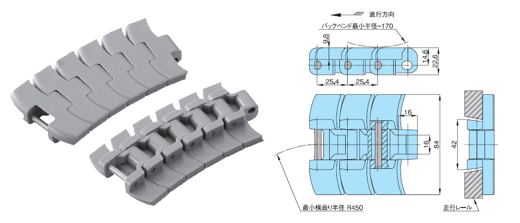 • ・従来までのプラトップチェーンより欠けにくい、トッププレートの厚み9.8mm を採用。