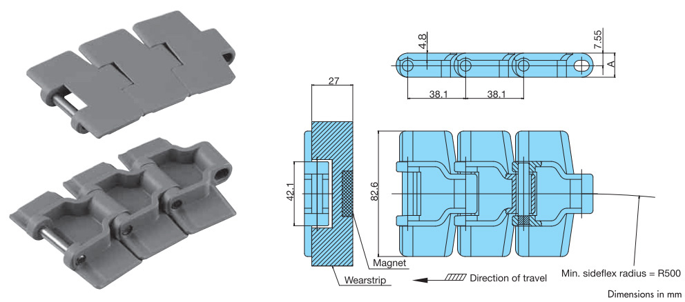 चेन पिच मिमी बैकबेंड त्रिज्या मिमी