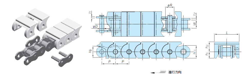 - नोट 4: कुछ उत्पाद ऐसे हैं जिन्हें "मानक श्रृंखला" के रूप में वर्णित नहीं किया गया है, जैसे कि प्लास्टिक रोलर टेबल और प्लास्टिक यूनिवर्सल चेन।
